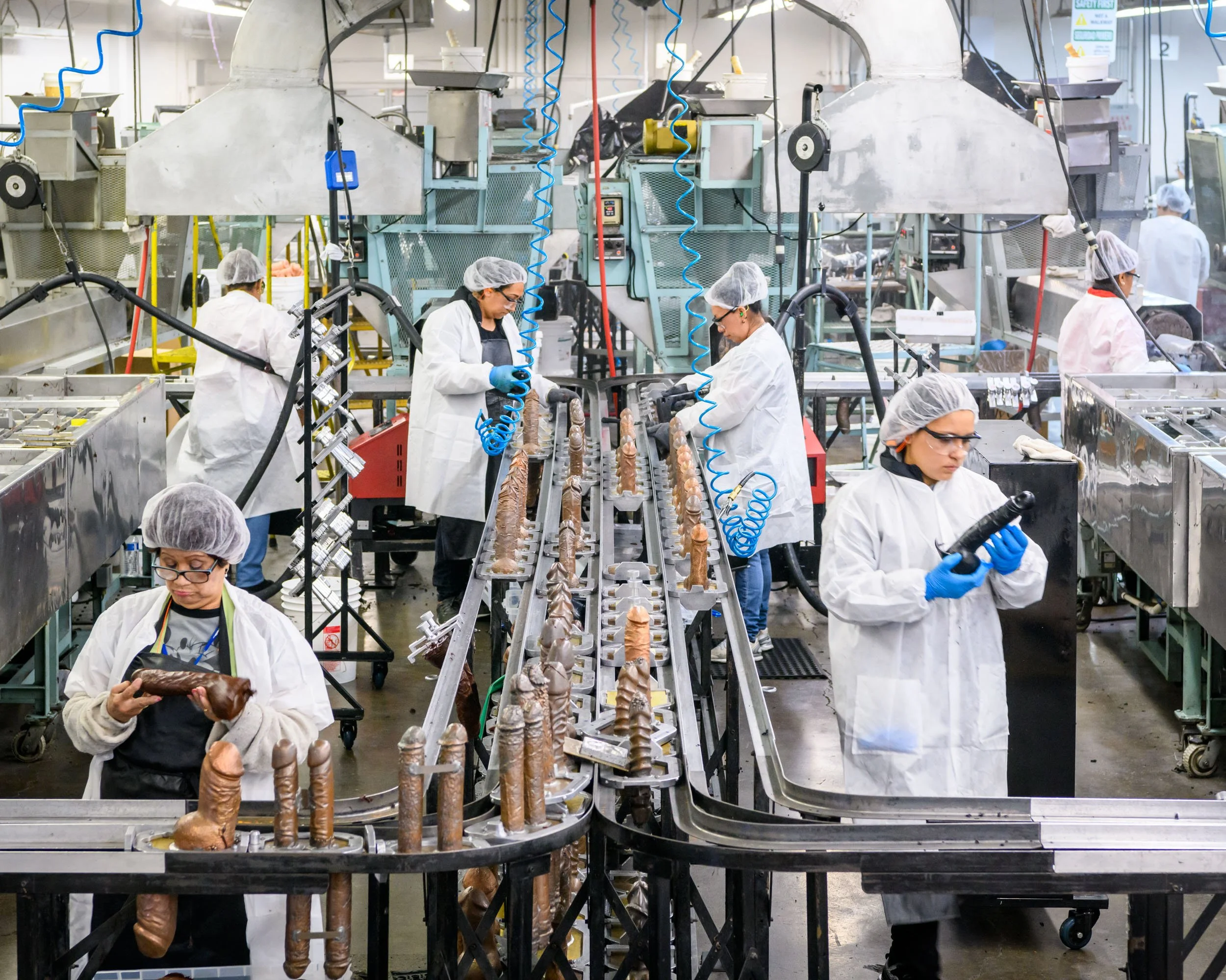 At the factory of Doc Johnson, 450 employees produce around 75,000 dildos, vibrators, masturbators, butt plugs and more every week. Produced with increasing connectivity, couples can control each others’ products remotely, allowing interaction over long distances.